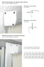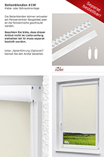 Das Kassettenrollo bietet verlässliche Funktion und gradlinige Erscheinung. Der verdunkelnde Stoff wird durch das Verstauen innerhalb der Kassette stilvoll ergänzt. Dafür stehen verschiedene Ausgangsmaße als Varianten bereit. Sollte das genau passende Maß für Ihr Fenster nicht passen, lässt sich mit etwas handwerklichem Geschick die Breite des Rollos mit einer Metallsäge und einer guten Stoffschere genau anpassen. Da die Länge ohnehin variabel ist, erhält man mit diesem Rollo am Ende eine beinahe maßgefertigte Lösung am Fenster. Der Stoff wird über die rechtsseitig angebrachte Kette stufenlos bedient. Für Kindersicherheit nach DIN EN 13120 von Kindern sorgt ein transparenter Kettenhalter. Das mitgelieferte Zubehör ermöglicht die verschraubte Montage an Decke oder Wand oder aber die Klebemontage direkt auf dem Fensterflügel. Zum Kassettenrollo können noch diverse Zubehörteile ergänzend bestellt werden: Sie haben die Option, das Kassettenrollo mit einer Pendelsicherung zum Kleben oder Klemmen auszustatten. Bei optimaler Verdunkelung empfehlen wir die extra bestellbaren Seitenblenden. Alle separat bestellbaren Zubehörteile sind nicht im eigentlichen Lieferumfang des Rollos enthalten.