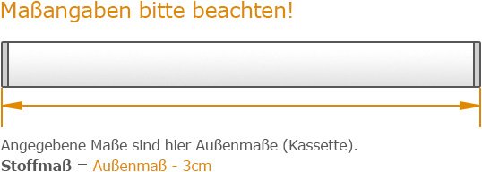 Das Kassettenrollo bietet verlässliche Funktion und gradlinige Erscheinung. Der verdunkelnde Stoff wird durch das Verstauen innerhalb der Kassette stilvoll ergänzt. Dafür stehen verschiedene Ausgangsmaße als Varianten bereit. Sollte das genau passende Maß für Ihr Fenster nicht passen, lässt sich mit etwas handwerklichem Geschick die Breite des Rollos mit einer Metallsäge und einer guten Stoffschere genau anpassen. Da die Länge ohnehin variabel ist, erhält man mit diesem Rollo am Ende eine beinahe maßgefertigte Lösung am Fenster. Der Stoff wird über die rechtsseitig angebrachte Kette stufenlos bedient. Für Kindersicherheit nach DIN EN 13120 von Kindern sorgt ein transparenter Kettenhalter. Das mitgelieferte Zubehör ermöglicht die verschraubte Montage an Decke oder Wand. Zum Kassettenrollo können noch diverse Zubehörteile ergänzend bestellt werden: Sie haben die Option, das Kassettenrollo mit einer Pendelsicherung zum Kleben oder Klemmen auszustatten. Bei optimaler Verdunkelung empfehlen wir die extra bestellbaren Seitenblenden. Alle separat bestellbaren Zubehörteile sind nicht im eigentlichen Lieferumfang des Rollos enthalten.