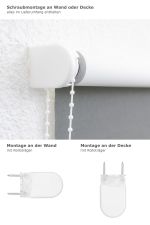 Dieses Rollo bietet alle funktionalen Vorteile des Klassikers und verdunkelt den Raum zuverlässig. Die Sonnenstrahlen werden dabei von der vollkommen weißen Außenfläche zum größten Teil wieder nach außen reflektiert. Dies sorgt nicht nur für eine verringerte Lichtdichte, sondern schützt auch vor Wärmeentwicklung an der Oberfläche. Was nicht reflektiert wurde, verliert sich effektiv im dichten Gewebe. Die stufenlose Bedienung erfolgt über einen Kettenzug, der wahlweise links- oder rechtsseitig angebracht werden kann. Zur Montage wird das Rollo an der Wand oder der Decke verschraubt, was über oder direkt in der Fensternische geschehen kann. Wenn Sie die Montage ohne Bohren und Schrauben bevorzugen, können Sie separat bestellbare Klemm- oder Klebeträger erwerben. Die Anbringung des Rollos erfolgt jeweils auf dem Fensterflügel. Für einen passgenauen Sitz kann das Rollo eigenhändig seitlich gekürzt werden. Dazu braucht es lediglich ein wenig handwerkliches Geschick, eine Metallsäge sowie eine Schere. So haben Sie am Ende ein günstiges Rollo, das so gut wie maßgefertigt ist.