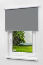 Das dunkle Grau des Rollos hat eine durchaus seriöse oder gravitätische Seite. Ein Büro, ein Empfangsraum oder andere Räume mit eher offiziellem Charakter, dekoriert es hervorragend. Die abdunkelnde Wirkung wird durch die Rückseitenbeschichtung erzielt, die gleichzeitig für Wärmeschutz sorgt.