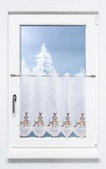 Dieses schlichte und zurückhaltende Design bereichert Ihre Fenstergestaltung, vor allem in der Weihnachtszeit. Für eine besonders gelungene Fensterdekoration schmücken Sie Ihr Fensterbrett mit einem Weihnachtsengel und dekorieren Ihre Fensterscheibe mit dieser Scheibengardine aus Plauener Spitze®. Der weiße durchsichtige Stoff wirkt allein schon sehr edel und filigran. Die Kirche in den Farben Braun und Gold vollendet das stilvolle Design dieses Motives. Angeboten wird dieses Modell in verschiedenen Breiten mit Rapportschritten von 16,2cm, sowie mit einer Höhe von 40cm. Bei einer 30° Handwäsche sind auch leichte Verschmutzungen zu lösen.