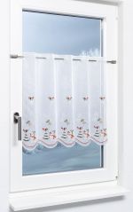 - Eine halbtransparente Scheibengardine aus 100% Polyester.