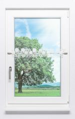 - Eine transparente Scheibengardine aus Plauener Spitze®, 100 % Polyester.