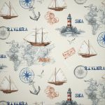 Das Design dieses lichtdurchlässigen Stoffes lässt Sie entspannt aufs Meer hinausschippern, dann neue Welten entdecken und diese angesichts der rauen See im wahrsten Sinne des Wortes im Sturm erobern. Überall auf dem Stoff sind detailverliebte Highlights zu finden. Landkarten, Kompassnadeln, imposante Segelschiffe und Möwen als typische See- und Küstenvögel. Da der Hintergrund eher dezent gestaltet ist, können diese Elemente ihre ganze Wirkung entfalten. Neben einem maßgefertigten Raffrollo bietet sich hierfür vor allem ein Gardinenschal nach Maß an. Beides können Sie sich im Konfigurator individuell zusammenstellen. Das Polyestergewebe lässt genügend mildes Licht in den Raum, um eine helle, offene Atmosphäre entstehen zu lassen. Dabei bleibt Ihre Privatsphäre stets gewahrt. Damit Sie auch eigene kreative Ideen verwirklichen können, bieten wir dieses Modell zudem als Meterware an.