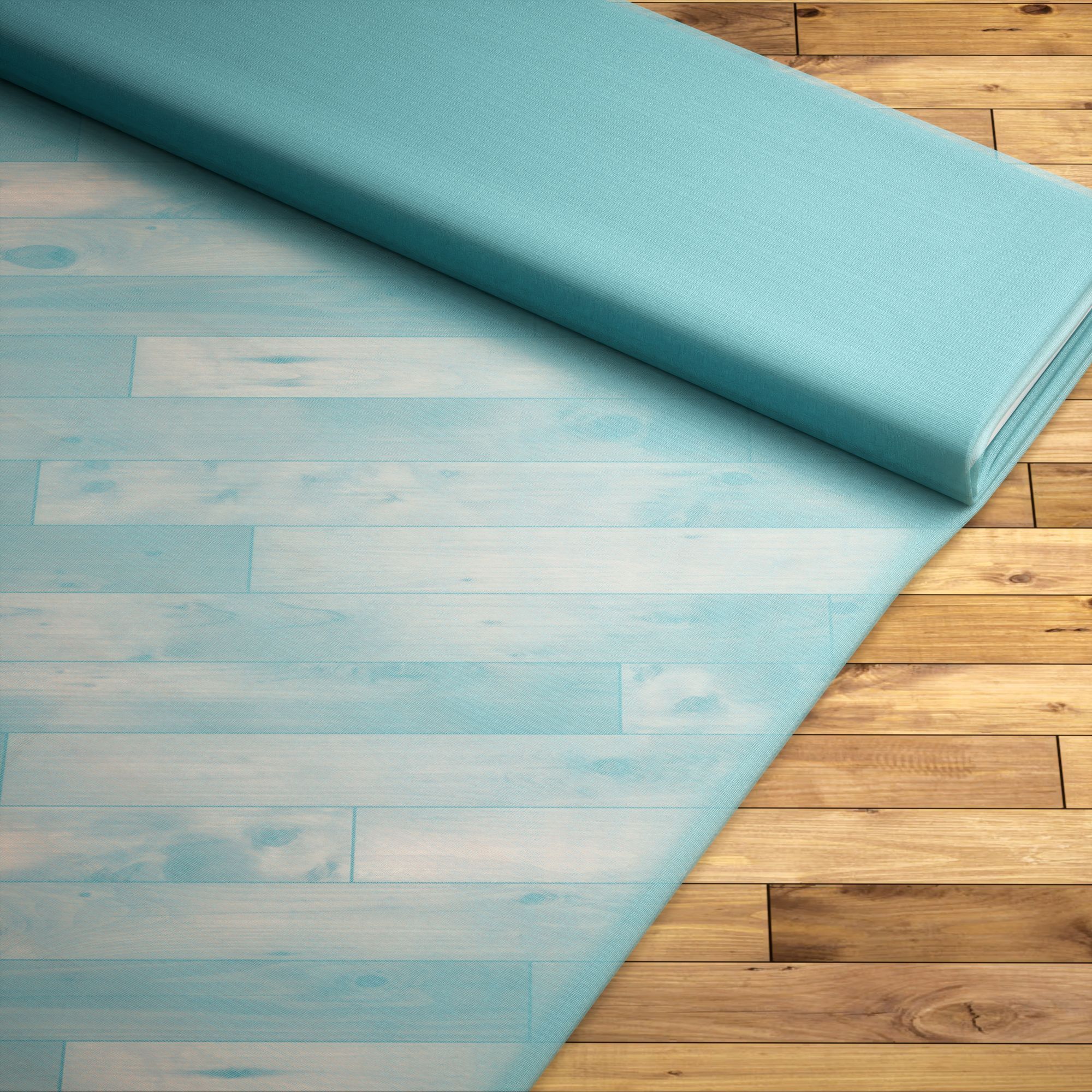 • Ein unkonfektionierter Gardinenstoff in türkis ohne Bleiband.