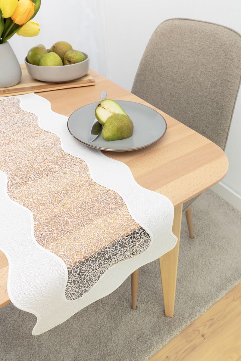 Liora #1W Plauener Spitze® - Tischläufer in Weiß