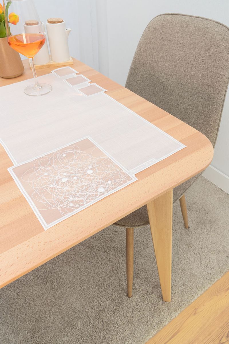 Die unifarbene Gestaltung in dem sanften Naturton Ecru lässt das abstrakte Design ganz für sich wirken. Freundlich und mit einer schönen Leichtigkeit präsentiert sich dieses Tischdeko Modell und kann als Ergänzung eines monochromen Stils mit verschiedenen Grau- und Weißtönen genauso dienen wie als Accessoire für ein Interieur in knallbunten, leuchtenden und fröhlichen Farben.