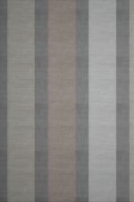 Da der Stoff in einem dunklen Grauton gestaltet ist, kommt auch der Glanz der silbergrauen Streifen edel und elegant heraus. Die Kombination mit verwandten Grautönen, Weiß und Schwarz sowie Dunkelblau betont den edlen Charakter des Stoffes. Währenddessen sorgen intensive Farben für extravagante und ausdrucksstarke Effekte.