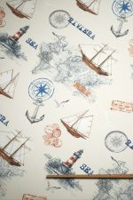 Leuchtend und ausdrucksstark stechen die roten Elemente von dem naturfarbenen Stoff hervor und buhlen mit den prachtvoll gestalteten Weltkarten und Segelschiffen um Aufmerksamkeit. Mit weiteren Naturfarben und viel frischem Weiß bringen Sie Ruhe in das Design. Accessoires aus Holz, Stein, Korb und Keramik sorgen für ein entspanntes, maritimes Flair.