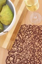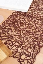 Die Luftigkeit und Lockerheit des aus ineinander verwundenen Fäden bestehenden Designs wird hier durch die edle Farbe Bordeaux ergänzt, welche für eine gediegene, warme und gemütliche Atmosphäre sorgt. Bordeaux sich insbesondere mit hellen Graunuancen, aber auch mit frischem Weiß und milden Erdtönen wie Creme, Ecru, Beige und Champagner geschmackvoll kombinieren.