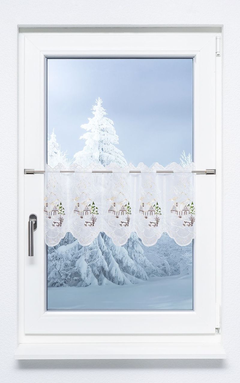 Scheibengardinen in Weiß sind echte Klassiker in Sachen Fensterdekoration. Geeignet für den Einsatz über das gesamte Jahr hinweg können diese Kurz-Gardinen in wirklich allen Räumlichkeiten genutzt werden. So kann die Scheibengardinen für Balkontüren ebenso gut eingesetzt werden wie für Fenster in den verschiedensten Größen. Als Scheibengardine für die Balkontür eignen sich dabei jedoch insbesondere jene Scheibengardinen, die lang an der Glasfläche herunterhängen. Wer ausdrucksstarke Akzente am Fenster setzen möchte, greift hier am besten zu unseren Scheibengardinen in Rot oder zu kurzen Gardinen mit roten Details. Moderner gestaltet sich das Fensterdekor indes als Scheibengardine mit Grau gestalteten Akzenten. Doch für welches Design Sie sich auch entscheiden, eines steht ganz sicher fest: Mit dem Griff zu diesen Kurz-Gardinen machen Sie definitiv nichts falsch! Überzeugen Sie sich daher gerne selbst von unserem breiten Sortiment von schönen Scheibengardinen und Bistrogardinen, um die geeignete Dekoration für Ihren Bedarf zu finden. Die Montage erfolgt hier spielend leicht mit Hilfe unserer Scheibengardinenstangen, die Sie mit wenigen Handgriffen am Fenster festklemmen und kostengünstig in unserem Onlineshop erwerben können.