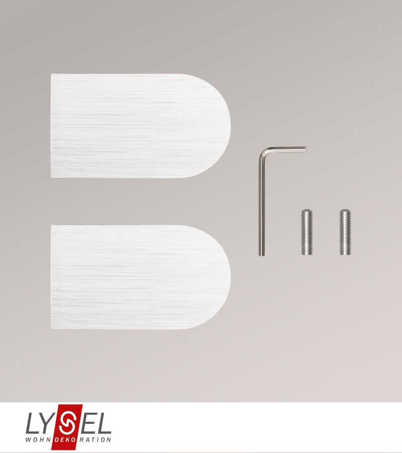 Die länglichen Endstücke haben die Form eines Rechtecks, bei welchem die Kanten einer kurzen Seite abgerundet wurden. Das und die strukturierte Stahl-Optik des gebürstetem Aluminiums verleihen dem Design eine gewisse Lebendigkeit und Dynamik. Mit den Abmessungen 7 x 4 cm fügt sich das Endstück in viele Wohnumgebungen, allen voran in moderne Einrichtungen, spielend leicht ein. Die Endstücke passen auf rechteckige Coral Gardinenstangen und werden mit dem beiliegenden Innensechskantschlüssel fixiert.