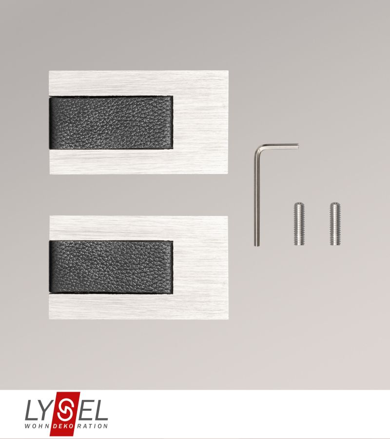 Diese Endstücke mit den Abmessungen 7 x 4 cm bestehen aus gebürstetem Aluminium und zeichnen sich daher durch eine lebendige Stahl-Optik aus. In die rechteckige Form fügt sich hier noch ein breiter Streifen aus schwarzem Kunstleder ein, der für einen spannenden Materialmix und einen ausdrucksstarken Kontrast sorgt. Der Charakter von modernen Einrichtungen wird damit schön unterstrichen. Auf rechteckigen Coral Gardinenstangen lassen sich die Endstücke mit dem beiliegenden Innensechskantschlüssel befestigen.