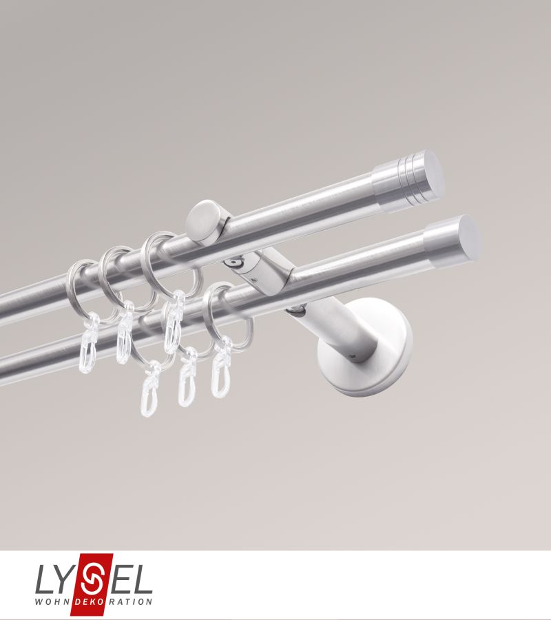 Lysel - SET Topaz 2-Lauf Doppelträger offen 160cm Endstücke Zylinder in Edelstahl-Optik #1W